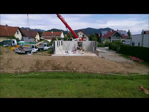 Pünktlich - pünktlicher als wir selbst, wie immer halt, aber das tut hier nichts zur Sache - war die erste Wandlieferung schon vor Ort und um 8 Uhr ging's bereits los mit der Montage - um 11 Uhr standen die Wände. Ein wirklich reibungsloser Ablauf der Wilbeton-Arbeiter, die sich dann sehr über eine Jause - Danke an die edlen Spender - freuten. Und ja, der Sichtbeton gefällt uns sehr gut!
